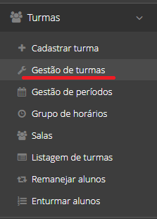 1. Clique no menu lateral "Turmas", depois clique em "Gestão de turmas"